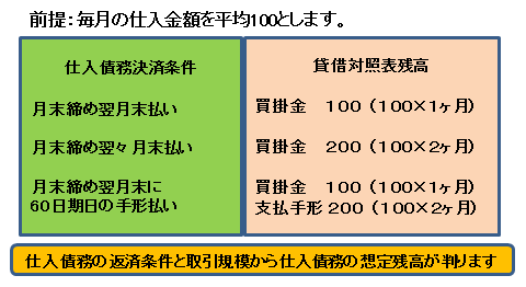 このように仕入債務はいずれも決済期日が決まっていますので、会社の取引規模及び決済条件から