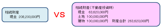 但し、相続後の財産は次の通りとなり、手許に残る現金は、賃貸用物件を取得しない場合に比べて144,580,000円少なくなるため、将来的に土地及び建物を活用して、それ以上の収益を得ることが前提となります。